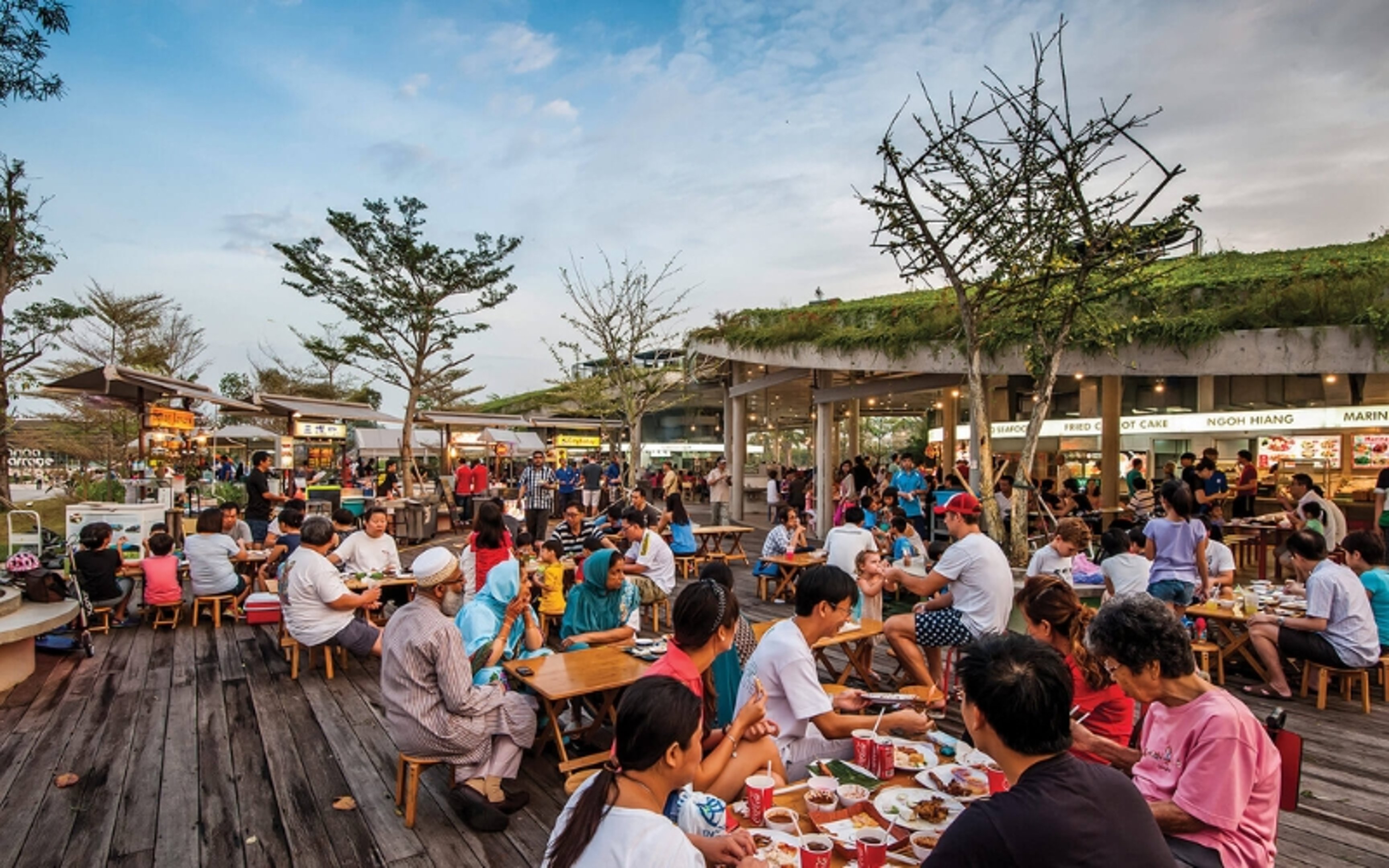 While it may attract many tourists, the food at Satay by the Bay is as delicious and authentic as any local hawker center. You'll find a wide array of the best Singaporean dishes here. Don't miss out on the satay (barbecue meat skewers coated in delicious peanut sauce), grilled stingray, and Hokkien mee for a true taste of Singapore.