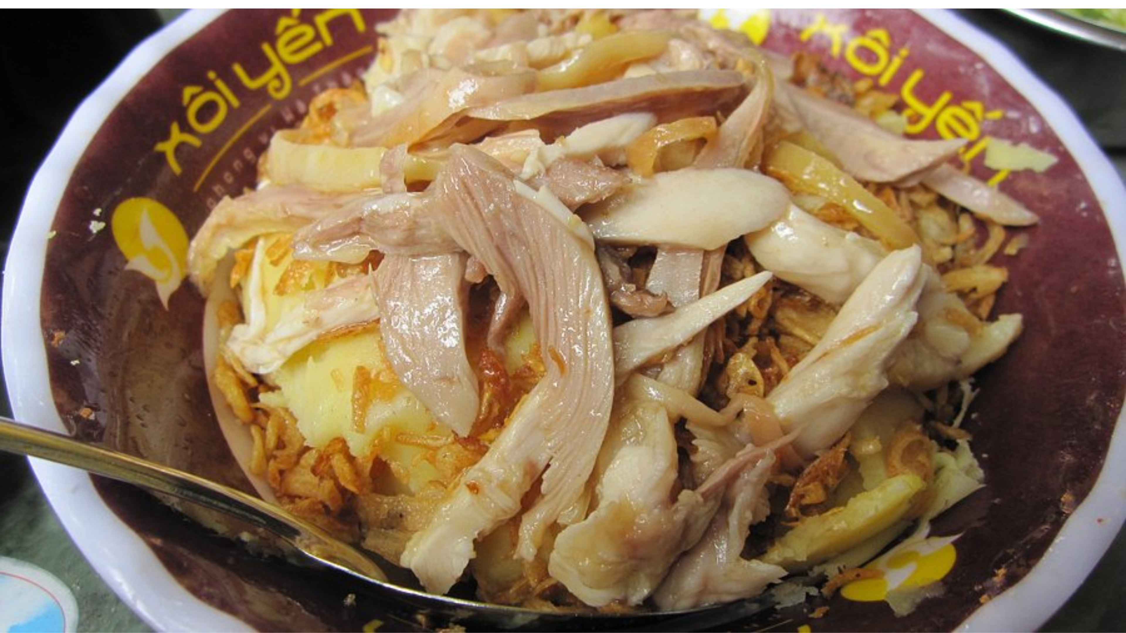 Every morning on the small streets of Hanoi, amidst the bustling and hurried atmosphere, there is a dish closely associated with the lives of the locals – Xoi Yen. This sticky rice dish serves as a perfect way to kickstart your day with energy. Sitting at a bustling sticky rice stall, soaking in the lively morning atmosphere of Hanoi, and enjoying a simple yet hearty meal is what makes so many people fall in love with this place