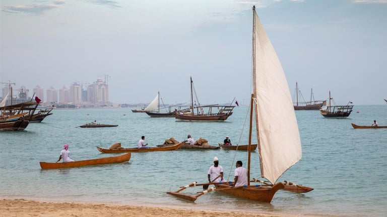 Those beautiful wooden boats you see in the bay are called dhows. They are a huge part of Qatar's pearl-diving heritage and are now one of the most popular tourist activities.
