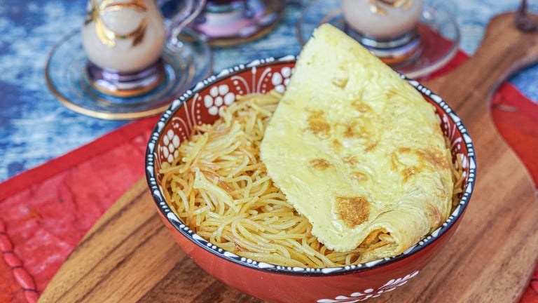 This one sounds weird on paper, but trust the process. It’s vermicelli noodles cooked with sugar, cardamom, and saffron, topped with a savory omelet. The sweet-and-salty combo wakes you up instantly.