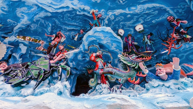 It's filled with over 1,000 colourful statues that bring Chinese myths and legends to life. The main attraction that everyone talks about is the infamous "Ten Courts of Hell." This exhibit shows graphic details of punishments in the afterlife. It’s strange, a little scary, but absolutely fascinating.